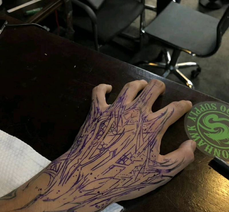 当前位置: 首页 >上海市纹身店-自由刺青纹身图案>刺纹身图片_手部花体字手背纹身图案