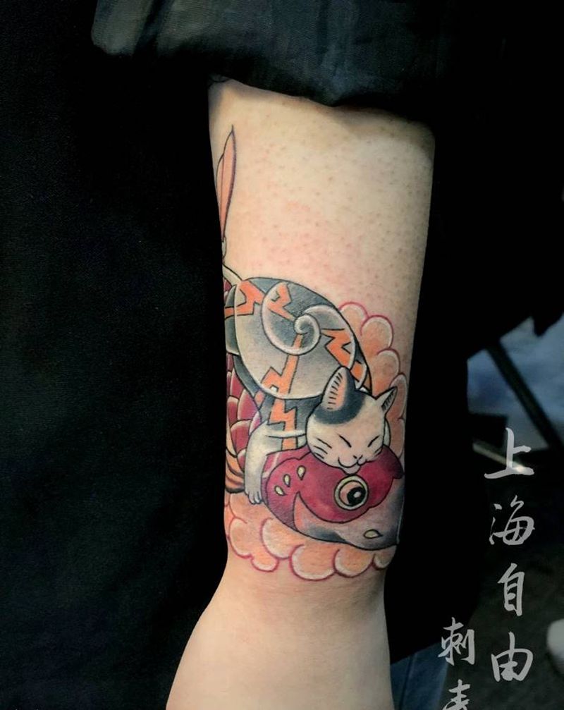 当前位置: 首页 >上海市纹身店-自由刺青纹身图案>社会猫纹身图片_手臂老传统新传统猫纹身图案