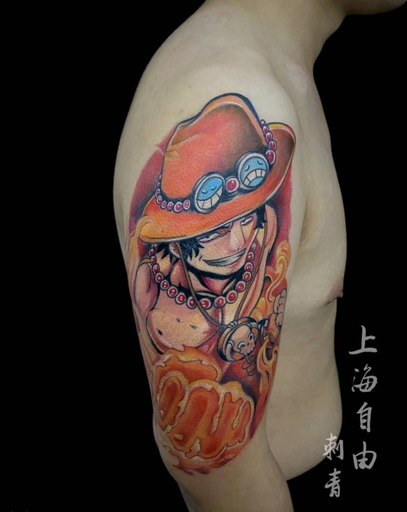 火神艾斯纹身图片_手臂欧美写实海贼王火神艾斯艾斯纹身图案