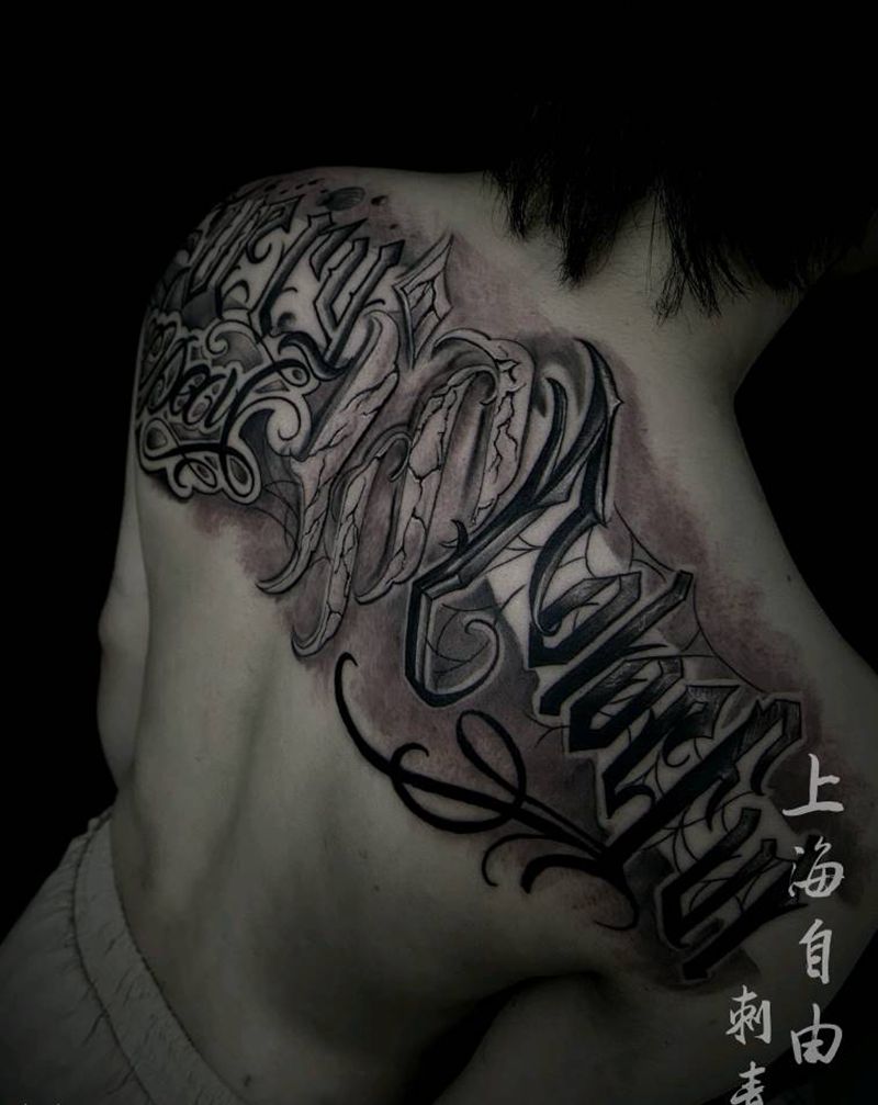 当前位置: 首页 >上海市纹身店-自由刺青纹身图案>Every day is co纹身图片_背部花体字肩膀花体字纹身图案