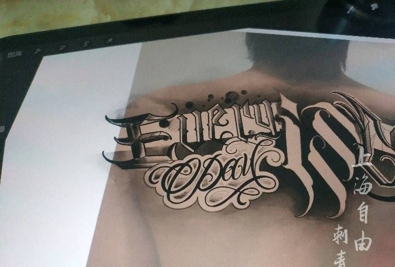 当前位置: 首页 >上海市纹身店-自由刺青纹身图案>Every day is co纹身图片_背部花体字肩膀花体字纹身图案
