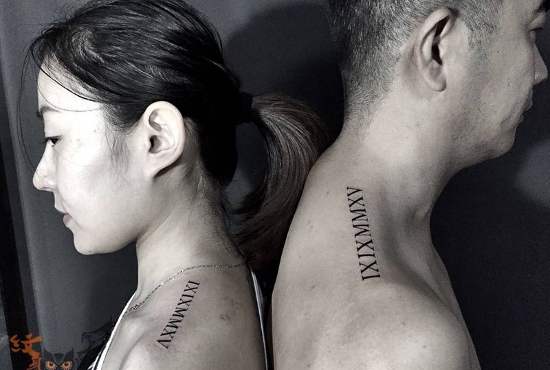 罗马字情侣纹身纹身图片_成品肩部欧美清新字符纹身图案