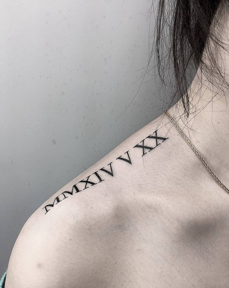 罗马日期纹身图片_成品肩部清新字符纹身图案