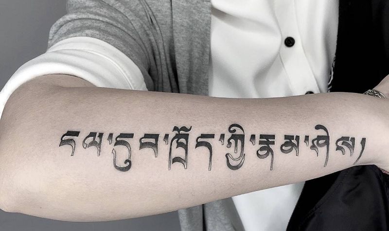 渐变梵文纹身图片_成品手臂手部清新字符宗教纹身图案