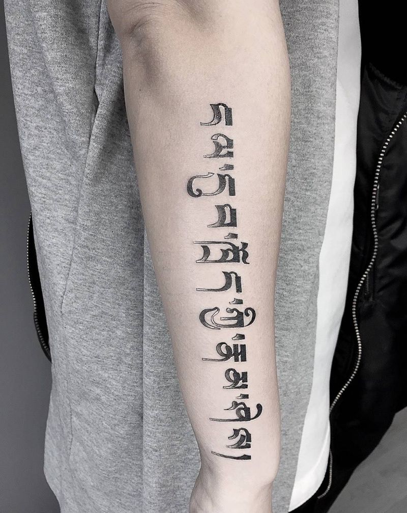 渐变梵文纹身图片_成品手臂手部清新字符宗教纹身图案