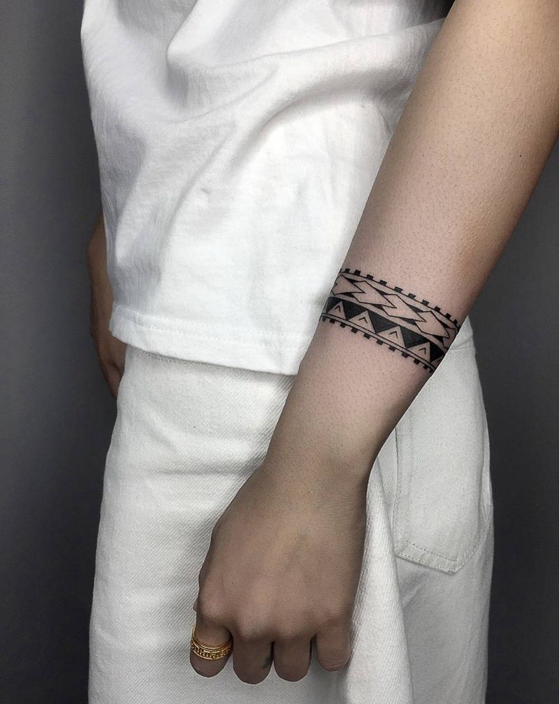 毛利图腾臂环纹身图片_成品手臂手部习俗几何图腾纹身图案