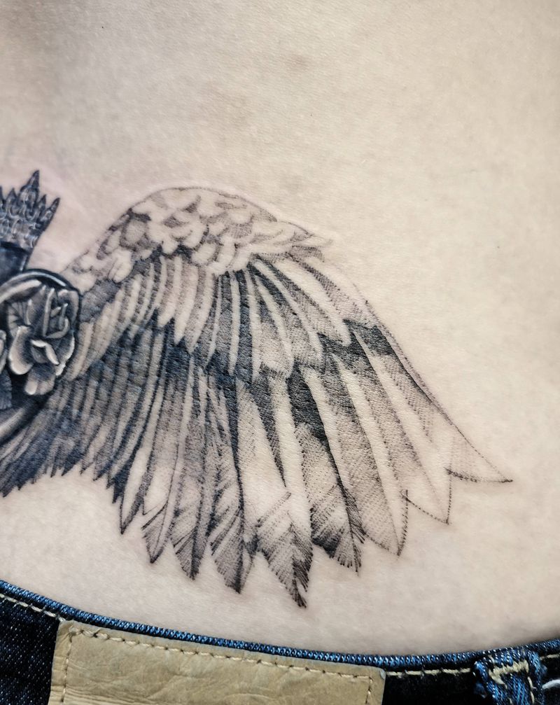 圣心纹身图片_臀部腰部欧美写实点刺翅膀心脏纹身图案
