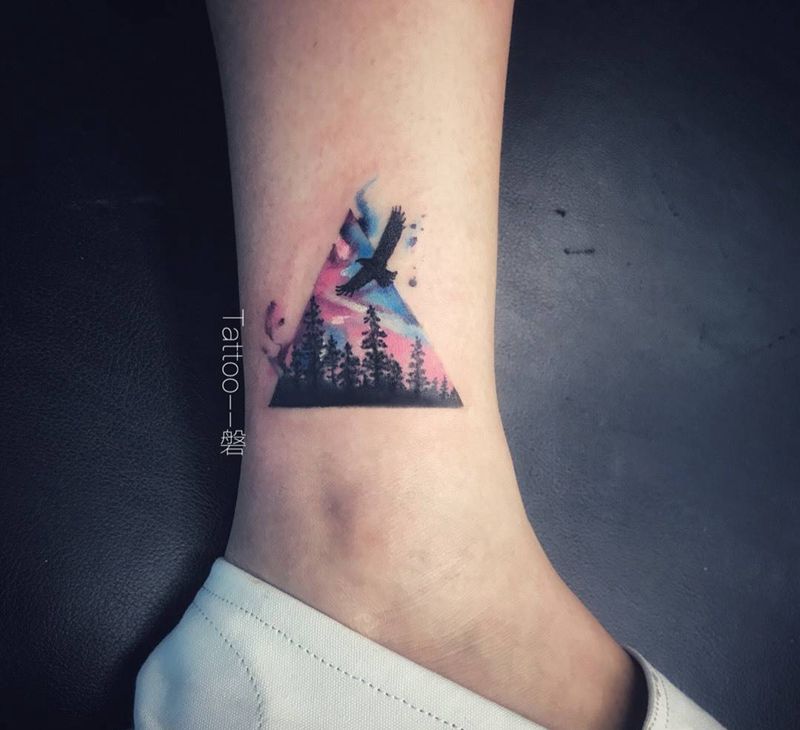 几何风景纹身图片_几何动物清新脚部成品纹身图案