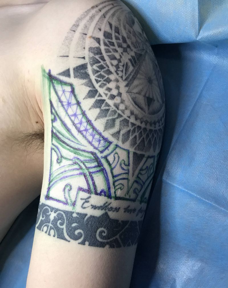 当前位置: 首页 >上海市纹身店-上海柒核刺青纹身图案>点刺图腾纹身图片_手臂肩部点刺图腾纹身图案