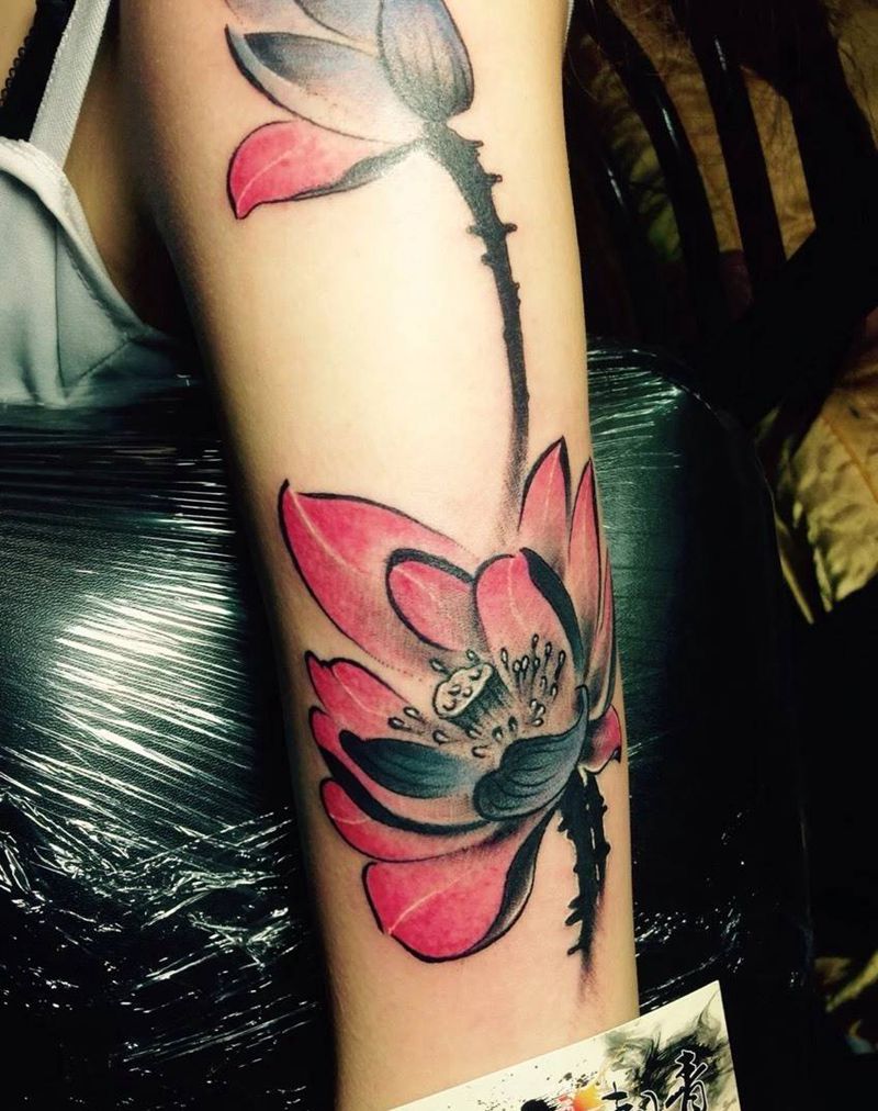 当前位置: 首页 >上海市纹身店-自由刺青纹身图案>彩色夏荷作品纹身图片