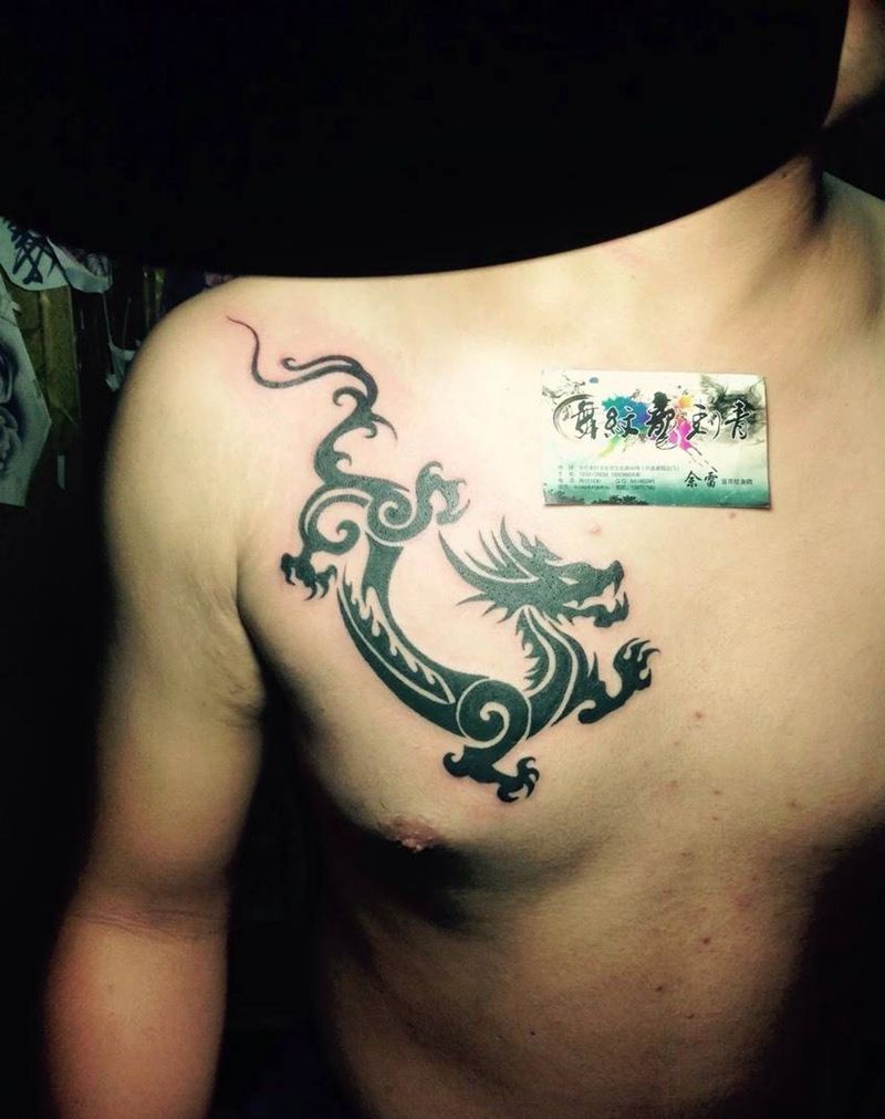 龙图腾纹身图片_成品胸部传统动物纹身图案