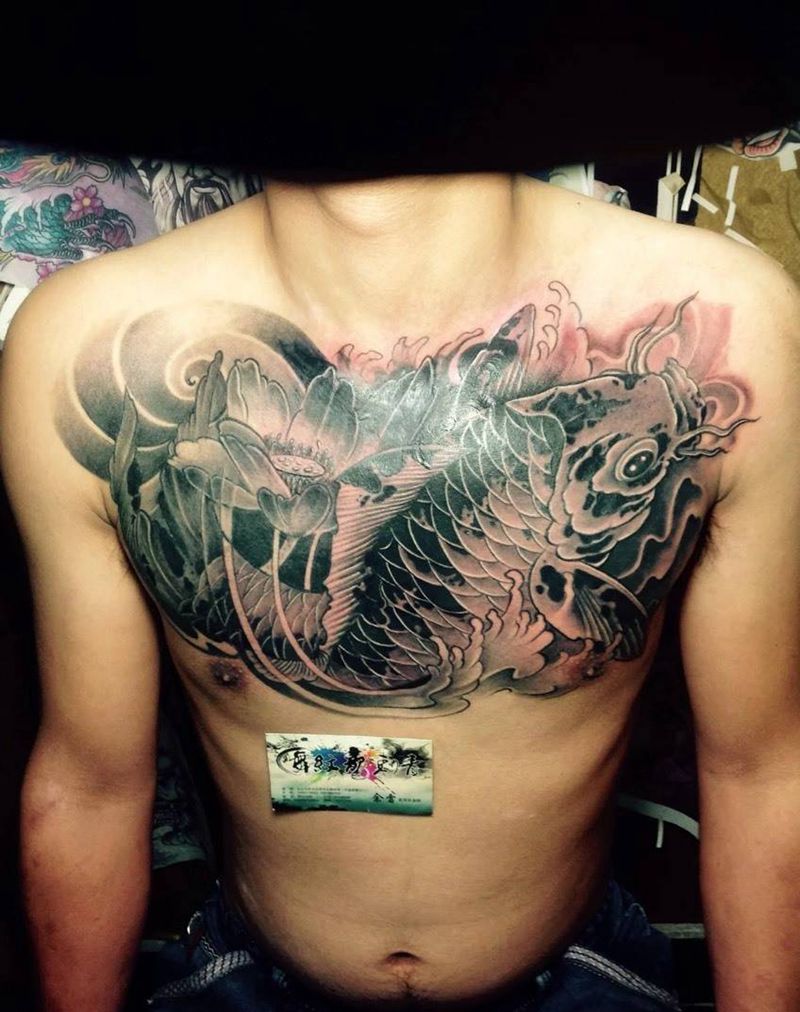 胸花祥鱼纹身图片_成品胸部传统动物纹身图案