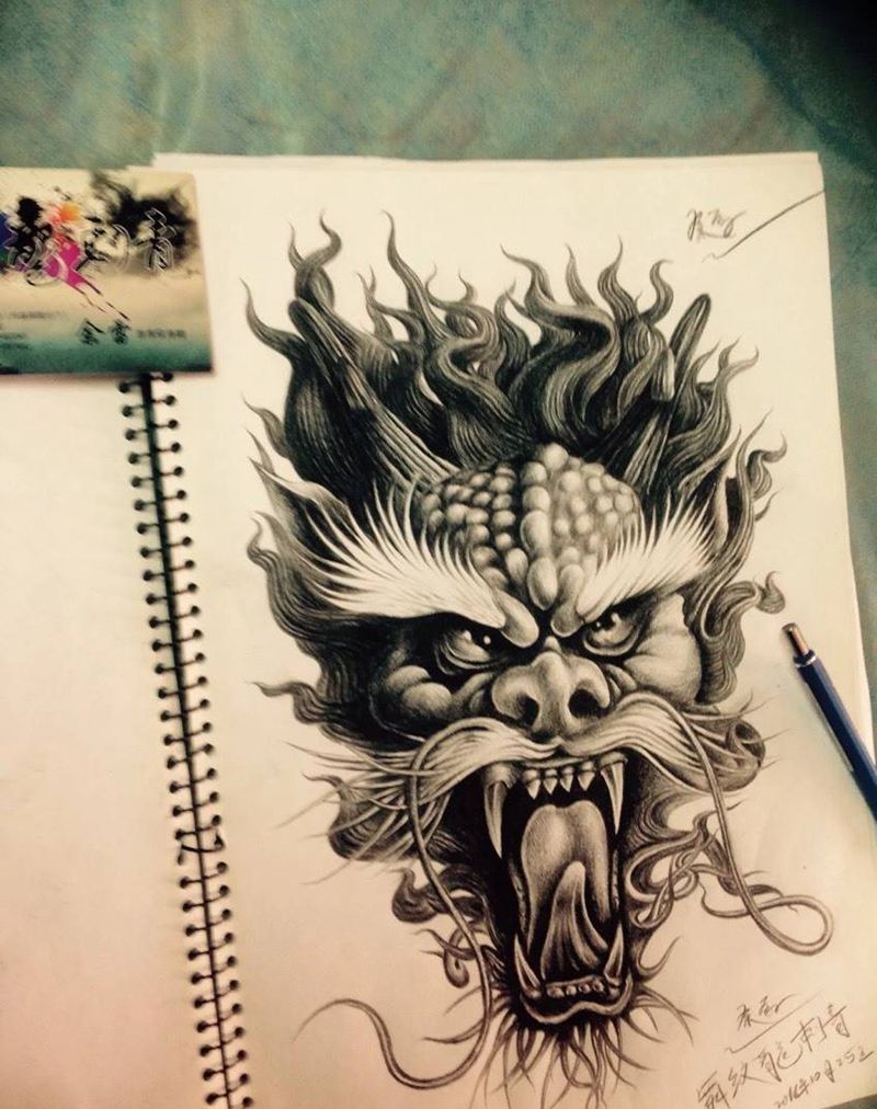 当前位置: 首页 >上海市纹身店-自由刺青纹身图案>龙首纹身图片_手稿传统写实动物纹身图案