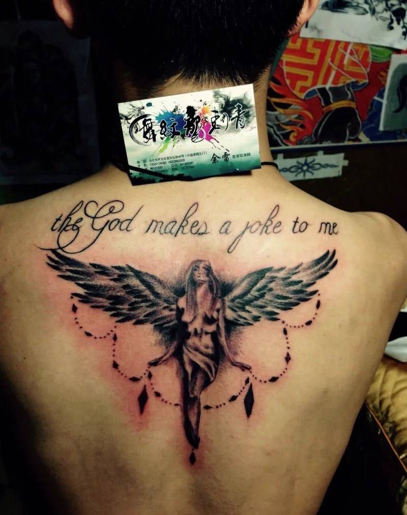 天使纹身图片_成品背部欧美写实人物纹身图案