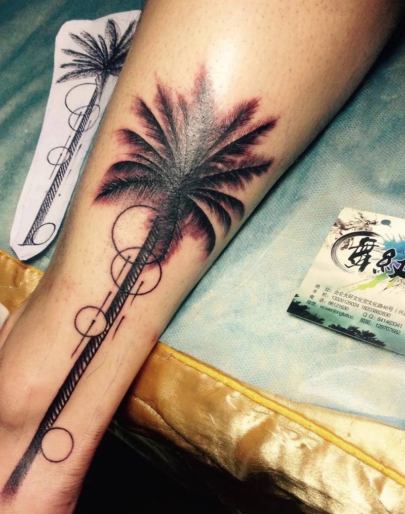 当前位置: 首页 >上海市纹身店-自由刺青纹身图案>椰树纹身图片_成品腿部传统植物纹身图案