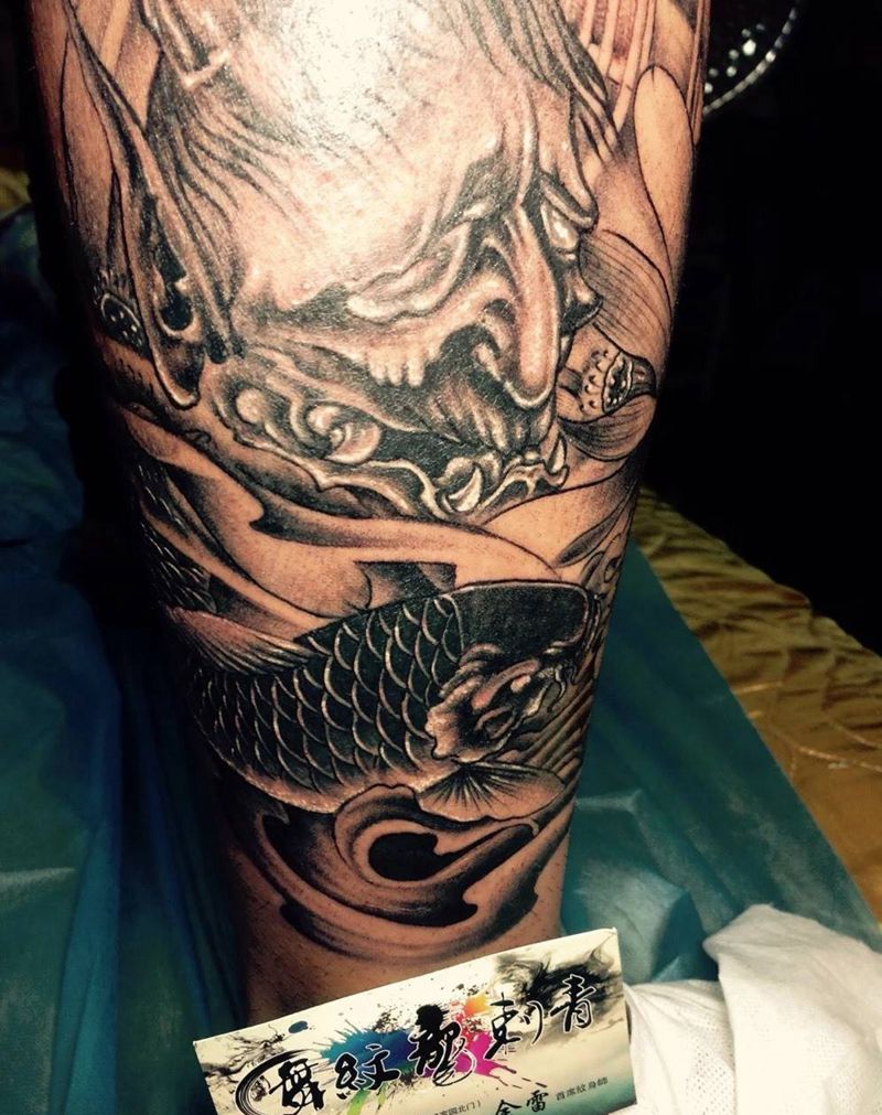 班若纹身图片_成品腿部传统人物鬼神动物纹身图案