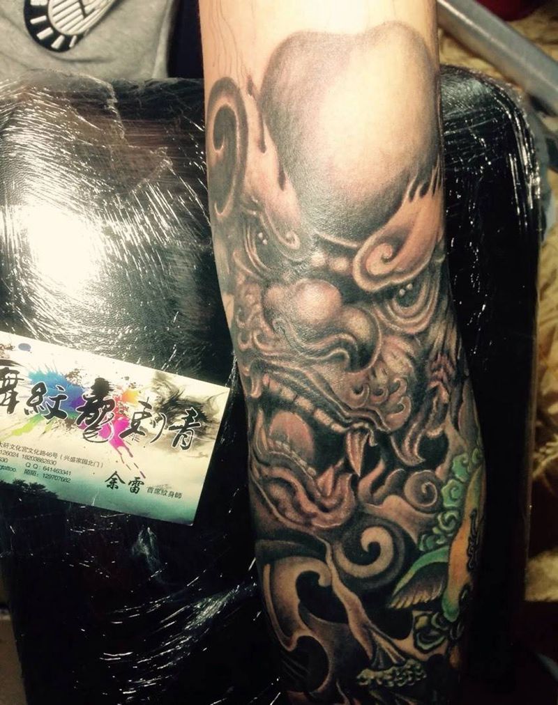 当前位置: 首页 >上海市纹身店-自由刺青纹身图案>唐狮。纹身图片_手臂传统动物鬼神宗教纹身图案