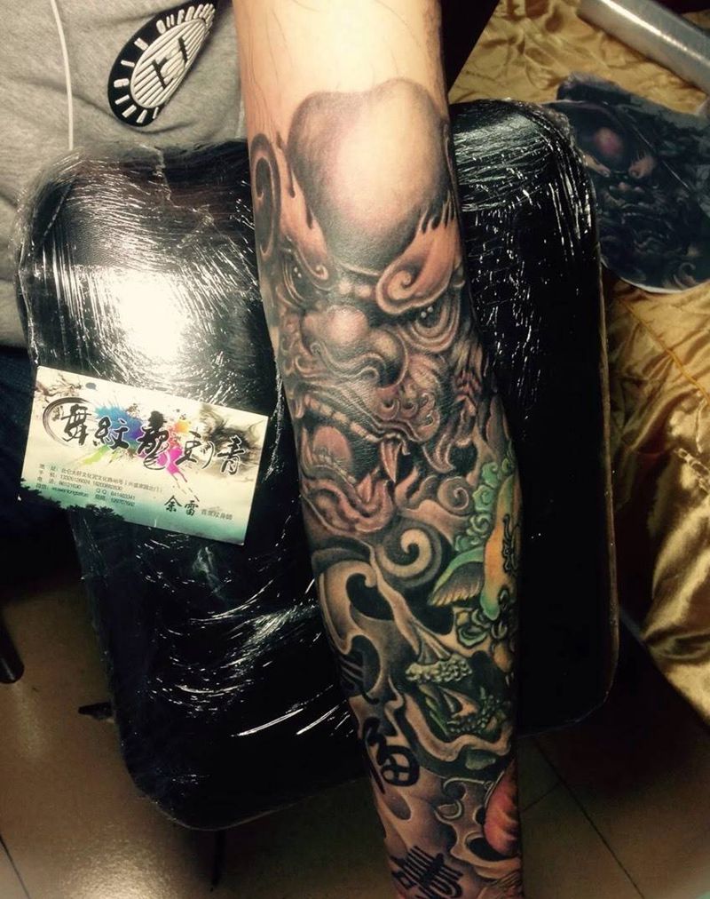 当前位置: 首页 >上海市纹身店-自由刺青纹身图案>唐狮。纹身图片_手臂传统动物鬼神宗教纹身图案