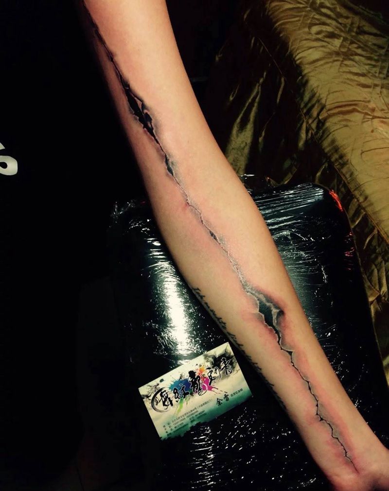 当前位置: 首页 >上海市纹身店-自由刺青纹身图案>死亡之线纹身图片_成品手臂写实几何纹身图案