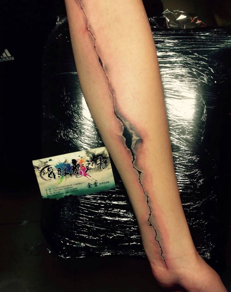 当前位置: 首页 >上海市纹身店-自由刺青纹身图案>死亡之线纹身图片_成品手臂写实几何纹身图案