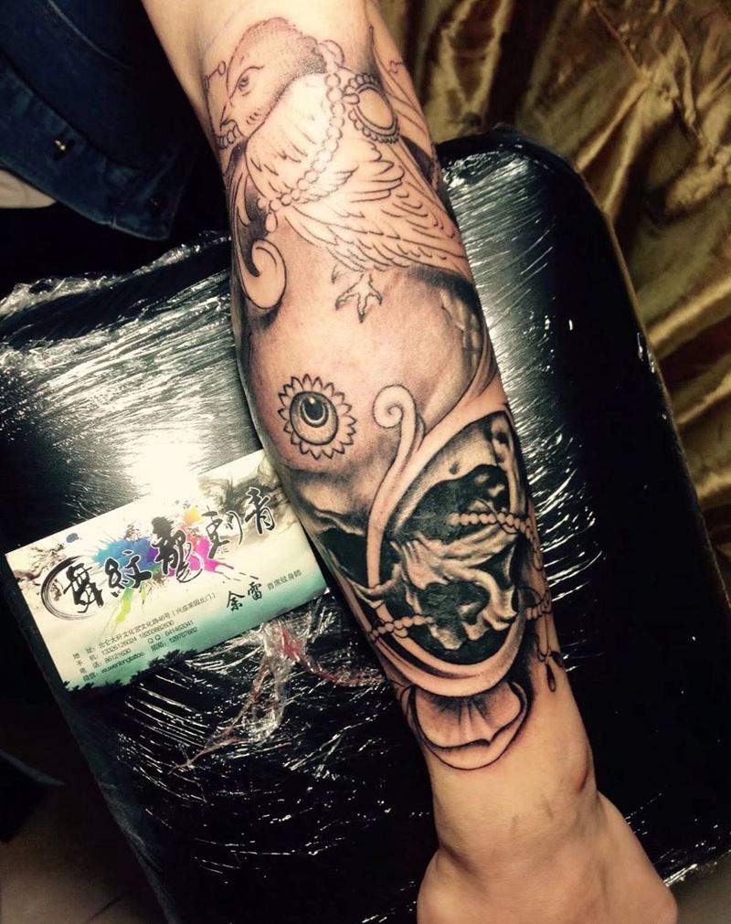 当前位置: 首页 >上海市纹身店-自由刺青纹身图案>骷髅头纹身图片_手部手臂欧美人物鬼神纹身图案