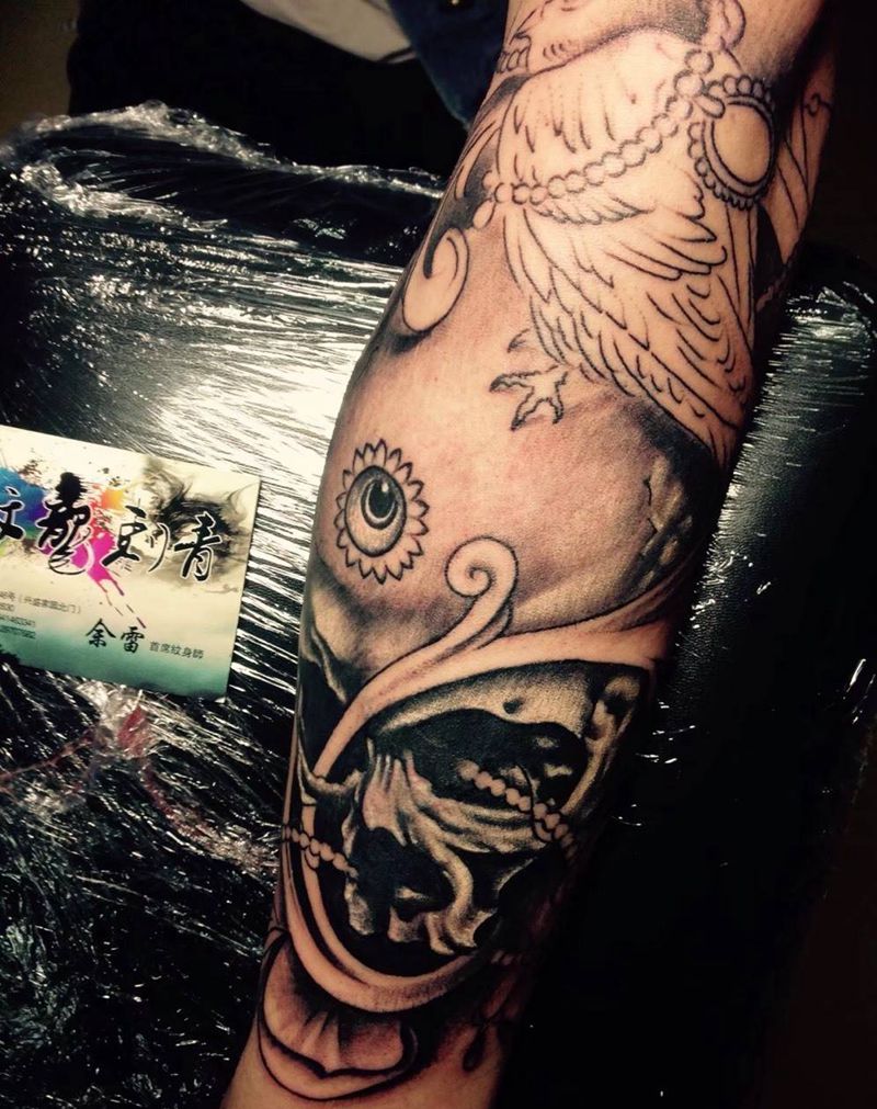 当前位置: 首页 >上海市纹身店-自由刺青纹身图案>骷髅头纹身图片_手部手臂欧美人物鬼神纹身图案