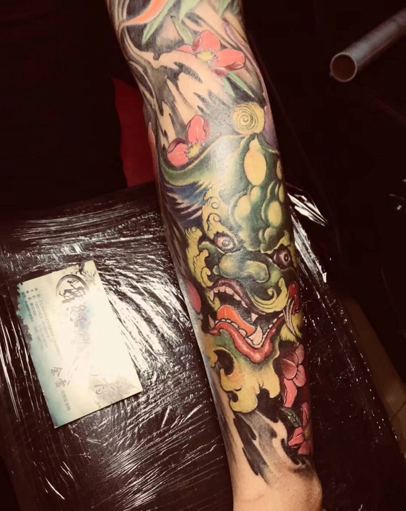 当前位置: 首页 >上海市纹身店-自由刺青纹身图案>唐狮纹身图片_手臂传统动物鬼神纹身图案
