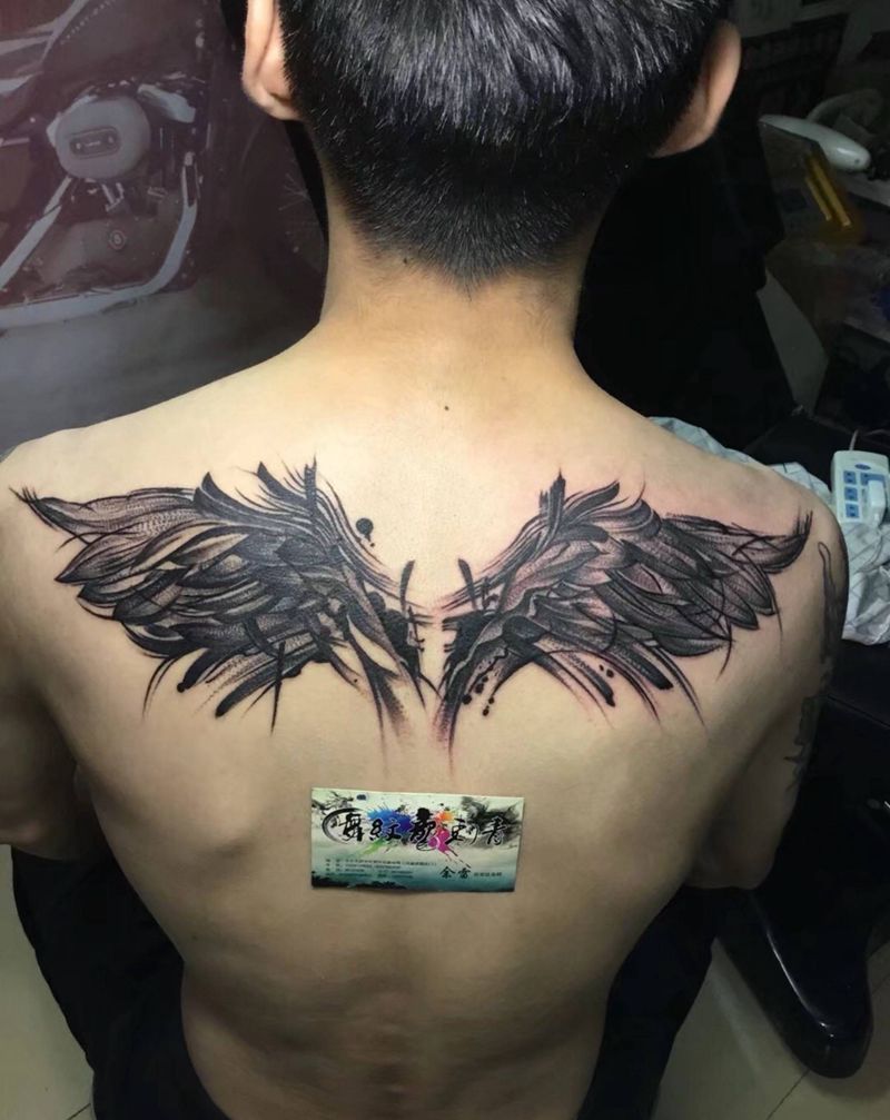 当前位置: 首页 >上海市纹身店-自由刺青纹身图案>翅膀纹身图片_成品背部欧美传统几何纹身图案