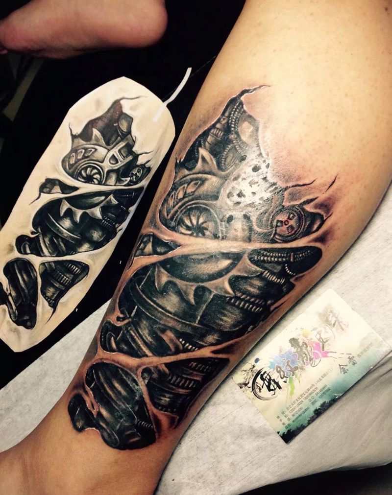 机械纹身图片_成品脚部写实传统几何纹身图案