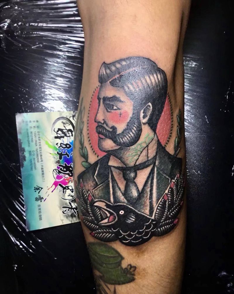 男爵纹身图片_成品手臂欧美人物纹身图案