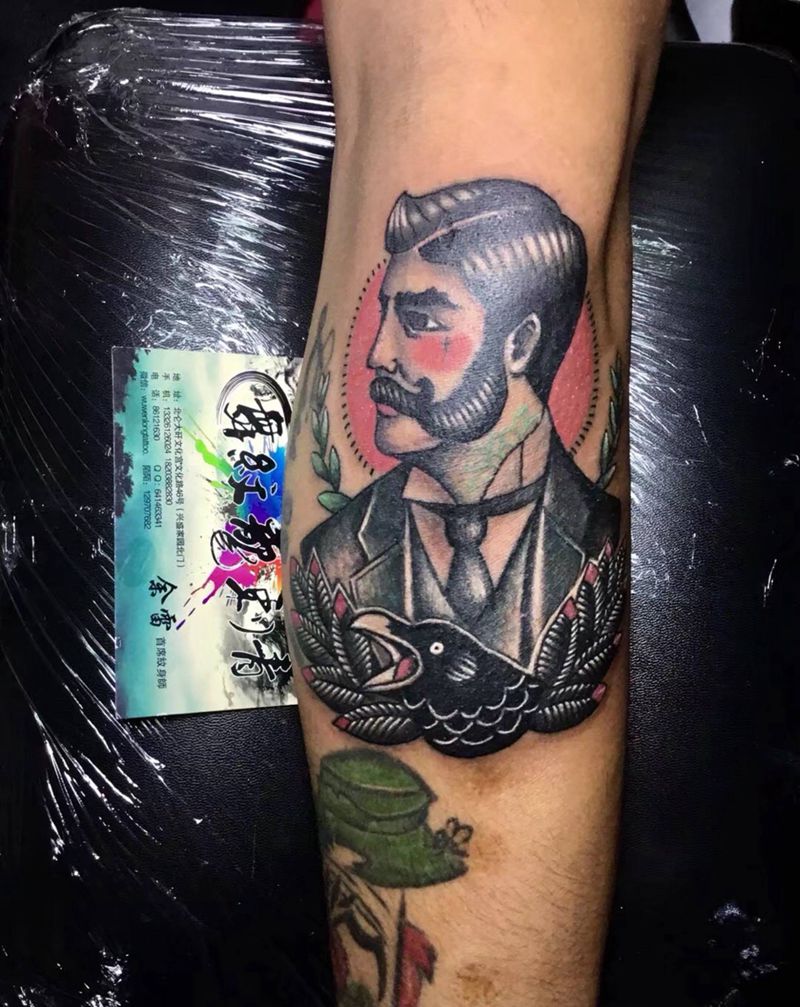 男爵纹身图片_成品手臂欧美人物纹身图案