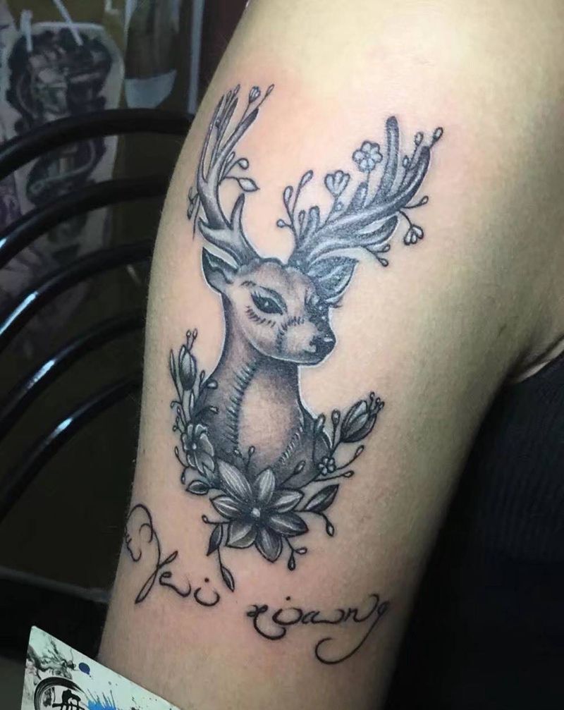 当前位置: 首页 >上海市纹身店-自由刺青纹身图案>鹿纹身图片_成品手臂清新动物纹身图案