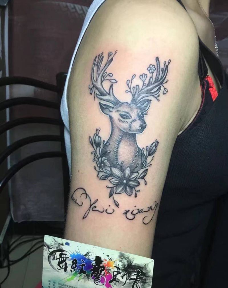 当前位置: 首页 >上海市纹身店-自由刺青纹身图案>鹿纹身图片_成品手臂清新动物纹身图案