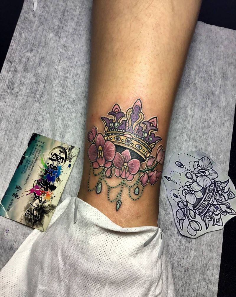 遮盖 蝴蝶兰纹身图片_腿部老传统水彩纹身图案