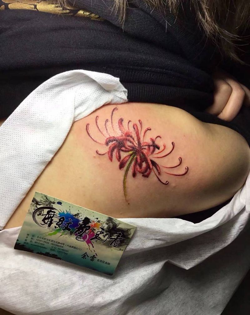 彼岸花纹身图片_肩部欧美写实水彩纹身图案