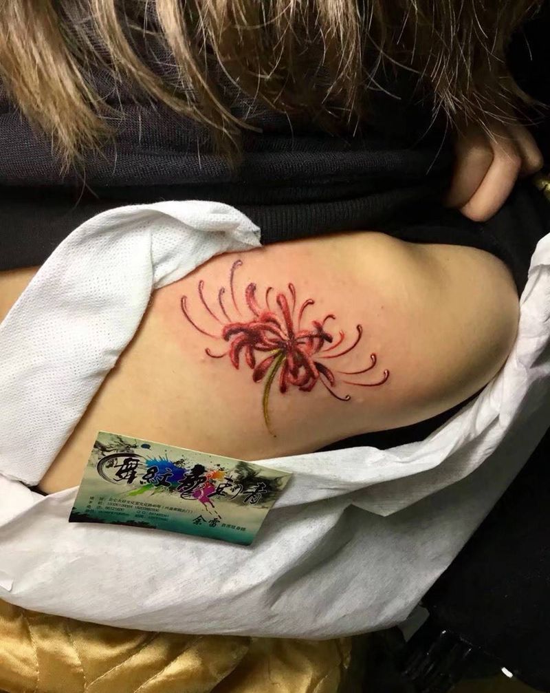 彼岸花纹身图片_肩部欧美写实水彩纹身图案