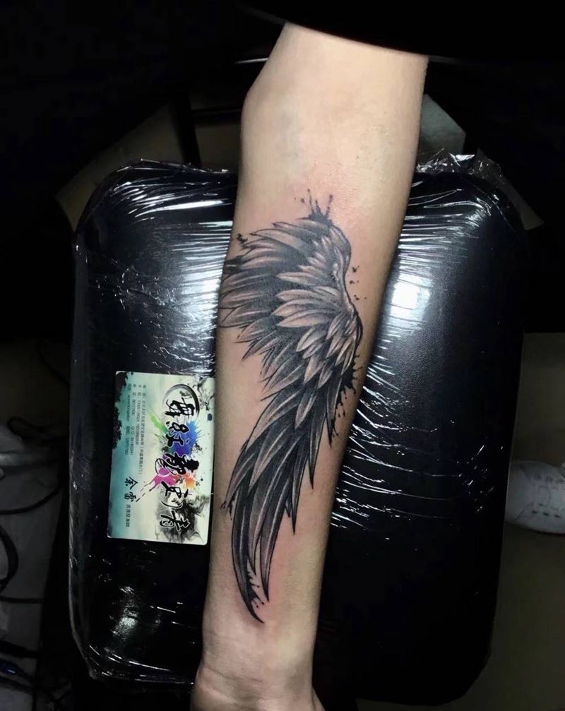 翅膀纹身图片_手臂水墨老传统纹身图案