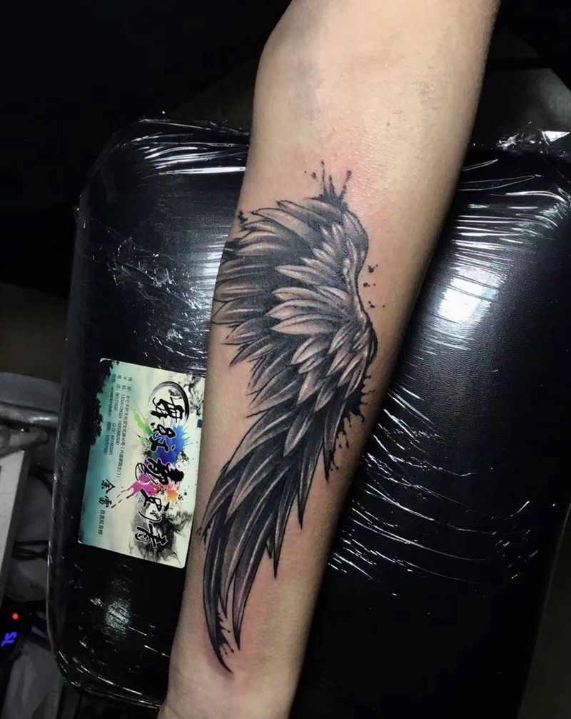 翅膀纹身图片_手臂水墨老传统纹身图案