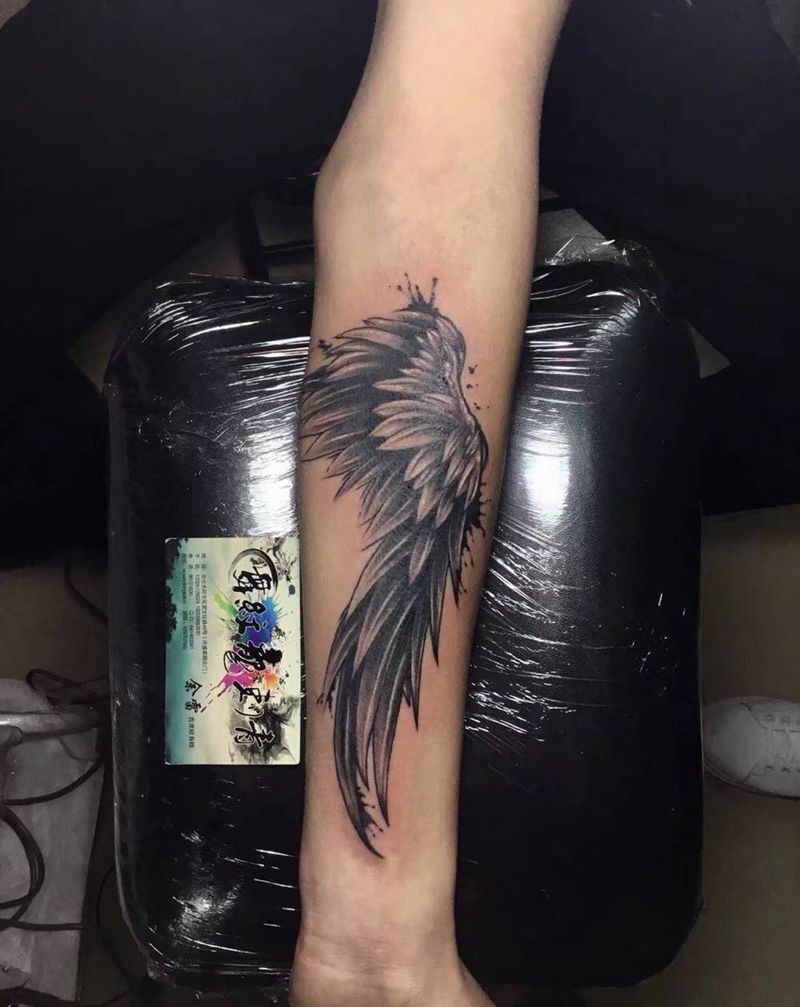 翅膀纹身图片_手臂水墨老传统纹身图案