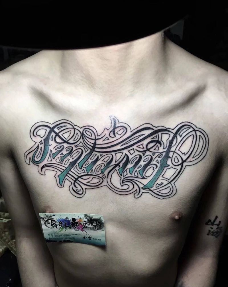当前位置: 首页 >上海市纹身店-自由刺青纹身图案>哥特字体纹身图片_胸部花体字纹身图案