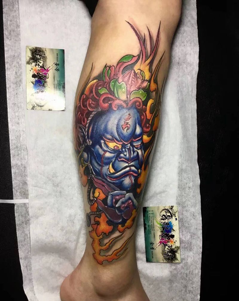 当前位置: 首页 >上海市纹身店-自由刺青纹身图案>大黑天纹身图片_腿部New School人物纹身图案