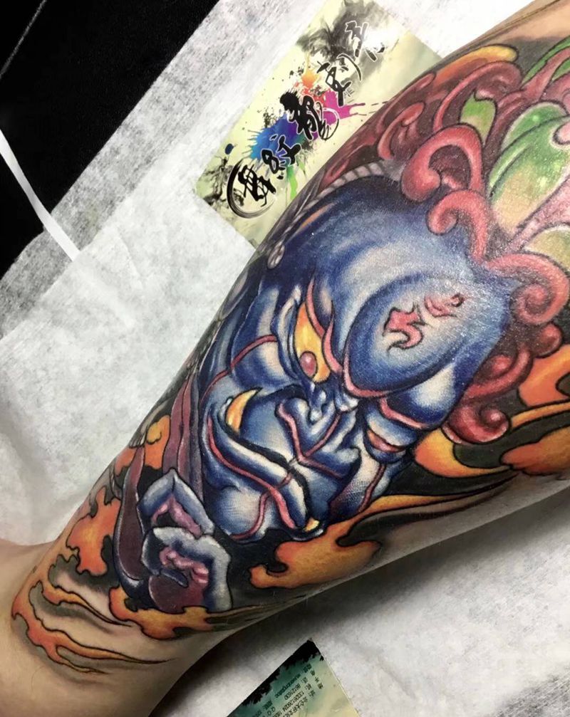当前位置: 首页 >上海市纹身店-自由刺青纹身图案>大黑天纹身图片_腿部New School人物纹身图案