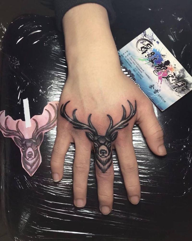 当前位置: 首页 >上海市纹身店-自由刺青纹身图案>鹿纹身图片_手部老传统纹身图案