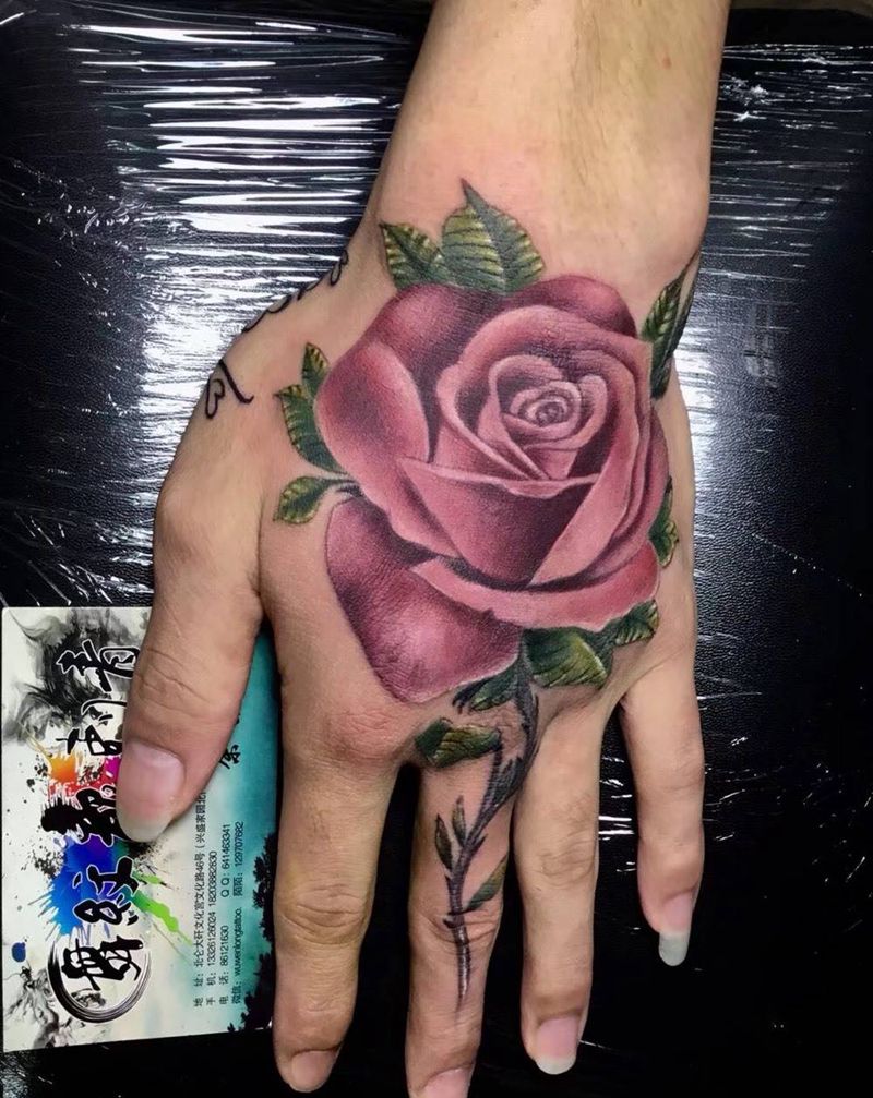 玫瑰纹身图片_手部水彩纹身图案