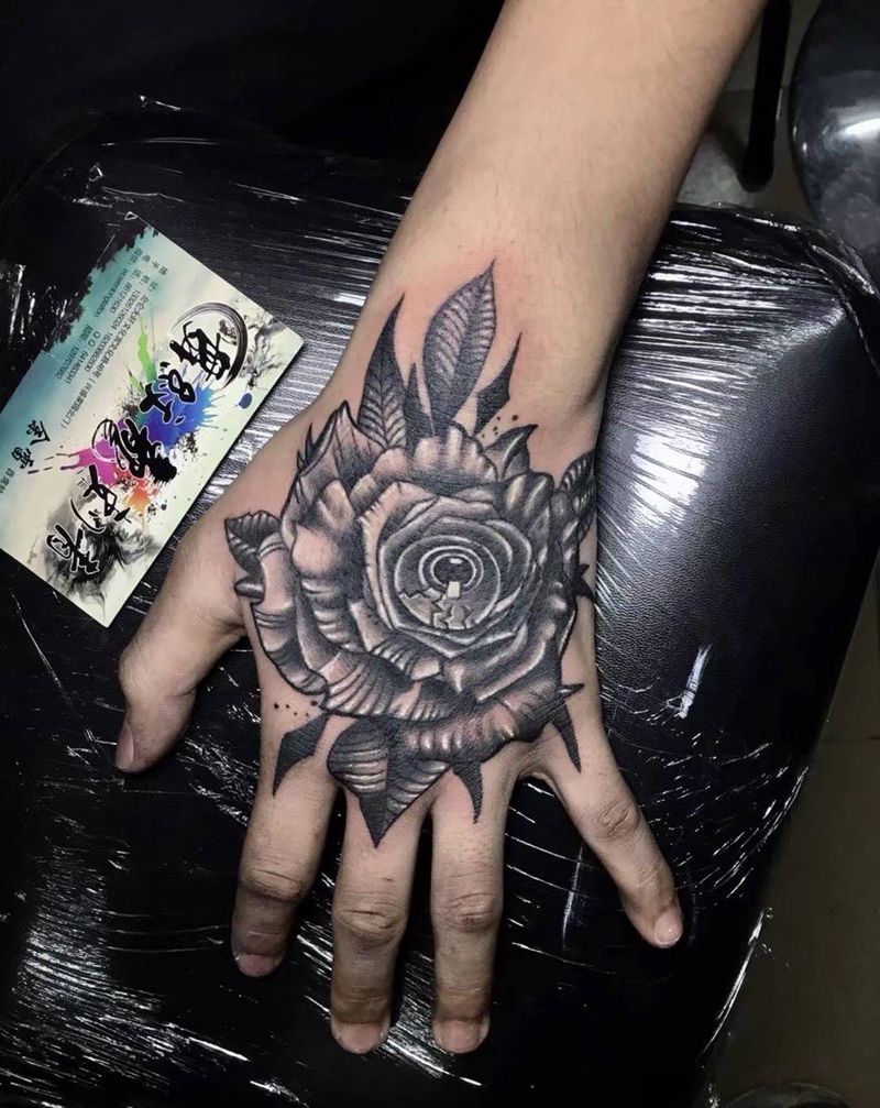 • 手背潮流时尚的玫瑰花眼睛纹身图案