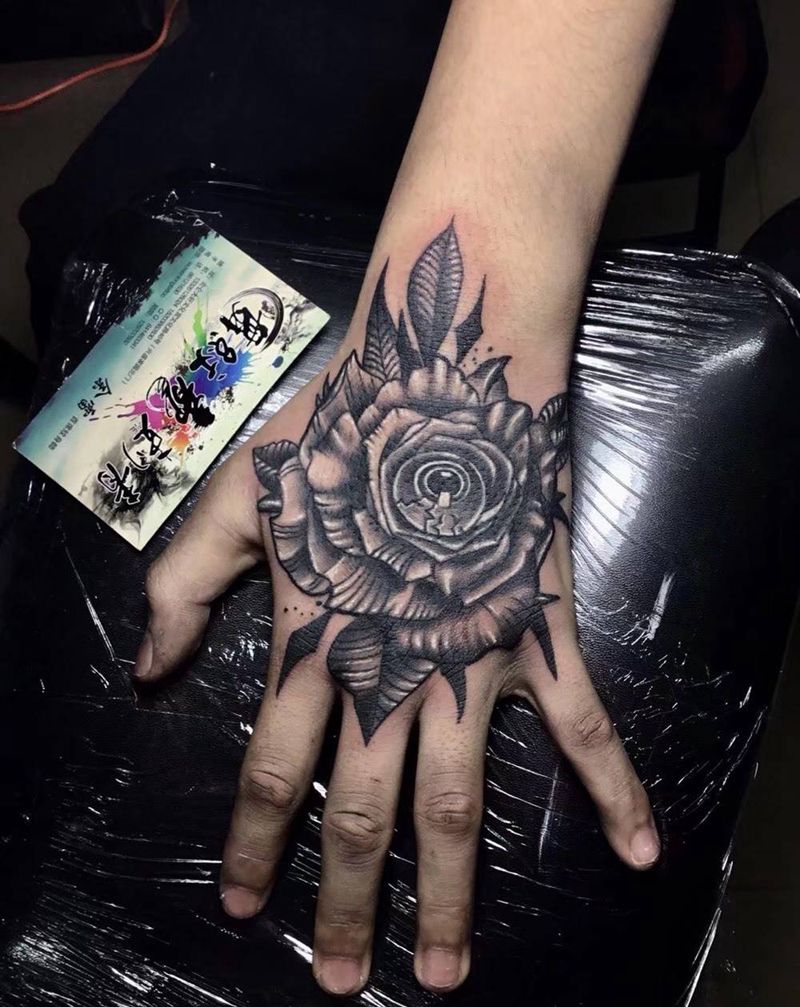 • 手背潮流时尚的玫瑰花眼睛纹身图案