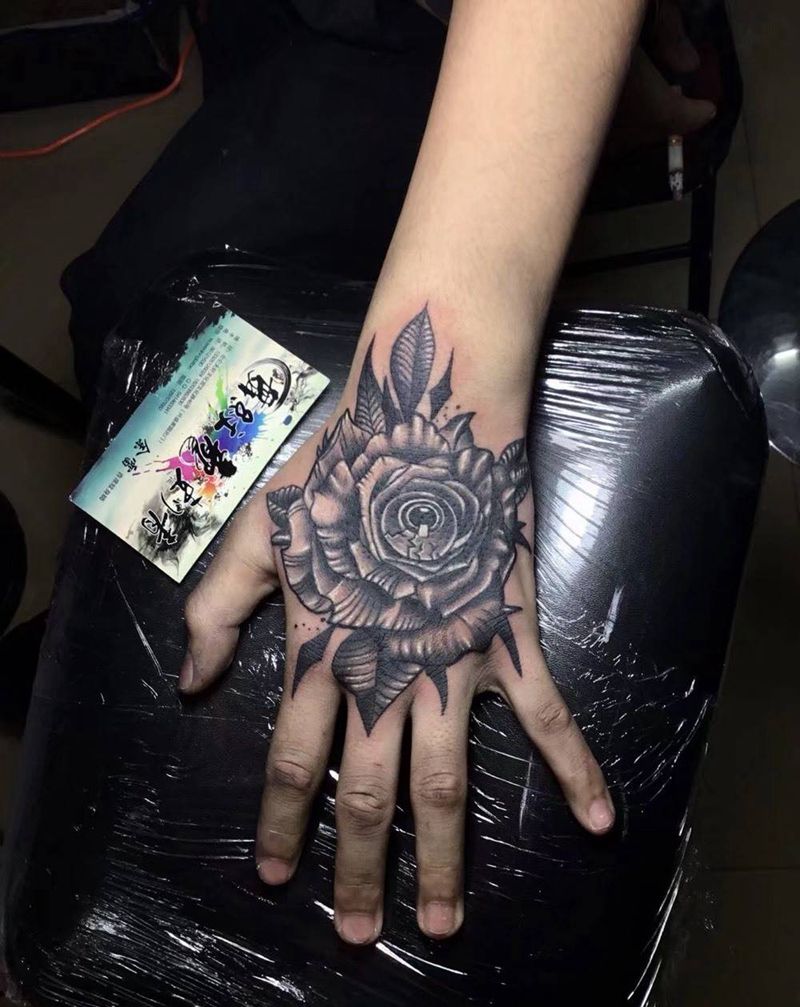 • 手背潮流时尚的玫瑰花眼睛纹身图案