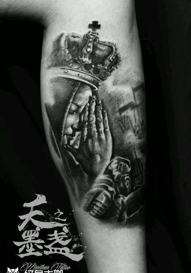 和平纹身图片_腿部欧美肖像写实人物原创成品纹身图案