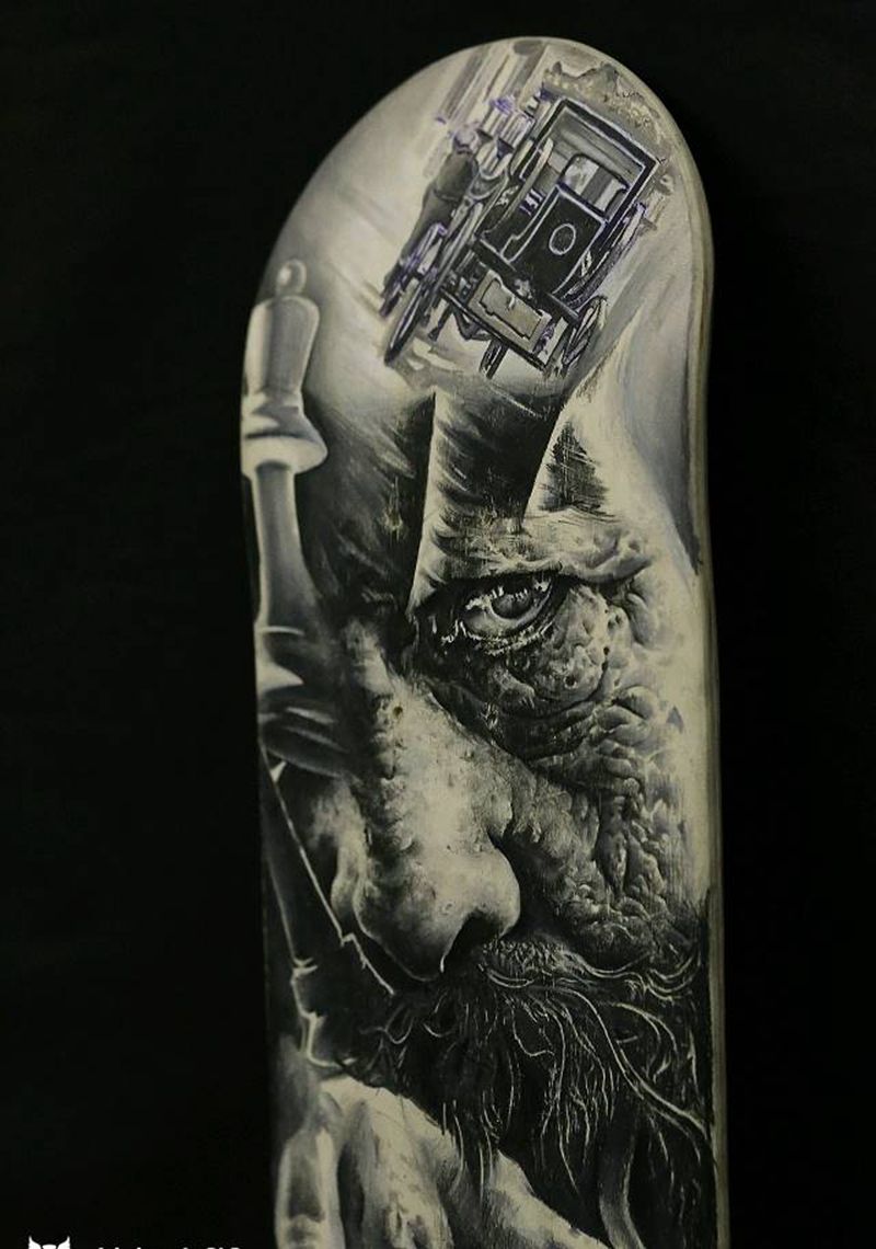 • T包小腿吹火男+阿多福纹身图片_腿部老传统新传统吹火男阿