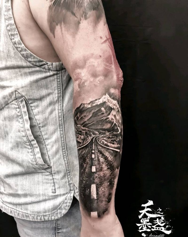路纹身图片_手臂欧美写实原创成品纹身图案